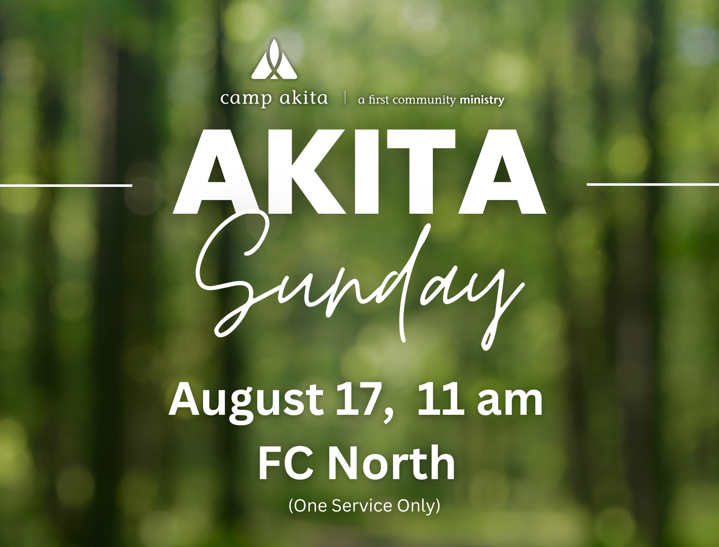 Our special worship service will occur on Sunday, August 17, at 11 am at First Community North. Rev. Sarah Kientz, Minister to Youth & Camp Akita, will deliver a sermon on our 2025 camp theme, Give Me Space.