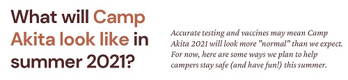 Thank you for your patience, and (most of all) for being part of the Akita Family! We cherish our campers, staff, and families, and hope you are staying safe and well. We hope that our behind-the-scenes work now will allow us to return home to Camp Akita together.